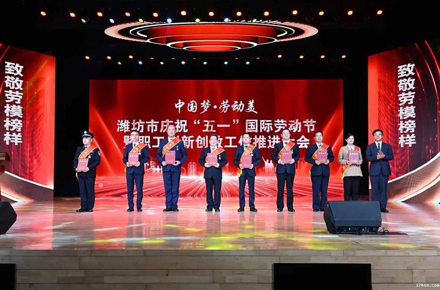 27日下午,潍坊市召开表彰大会,李永胜上台领奖,并代表发言,刘运书记颁奖。
