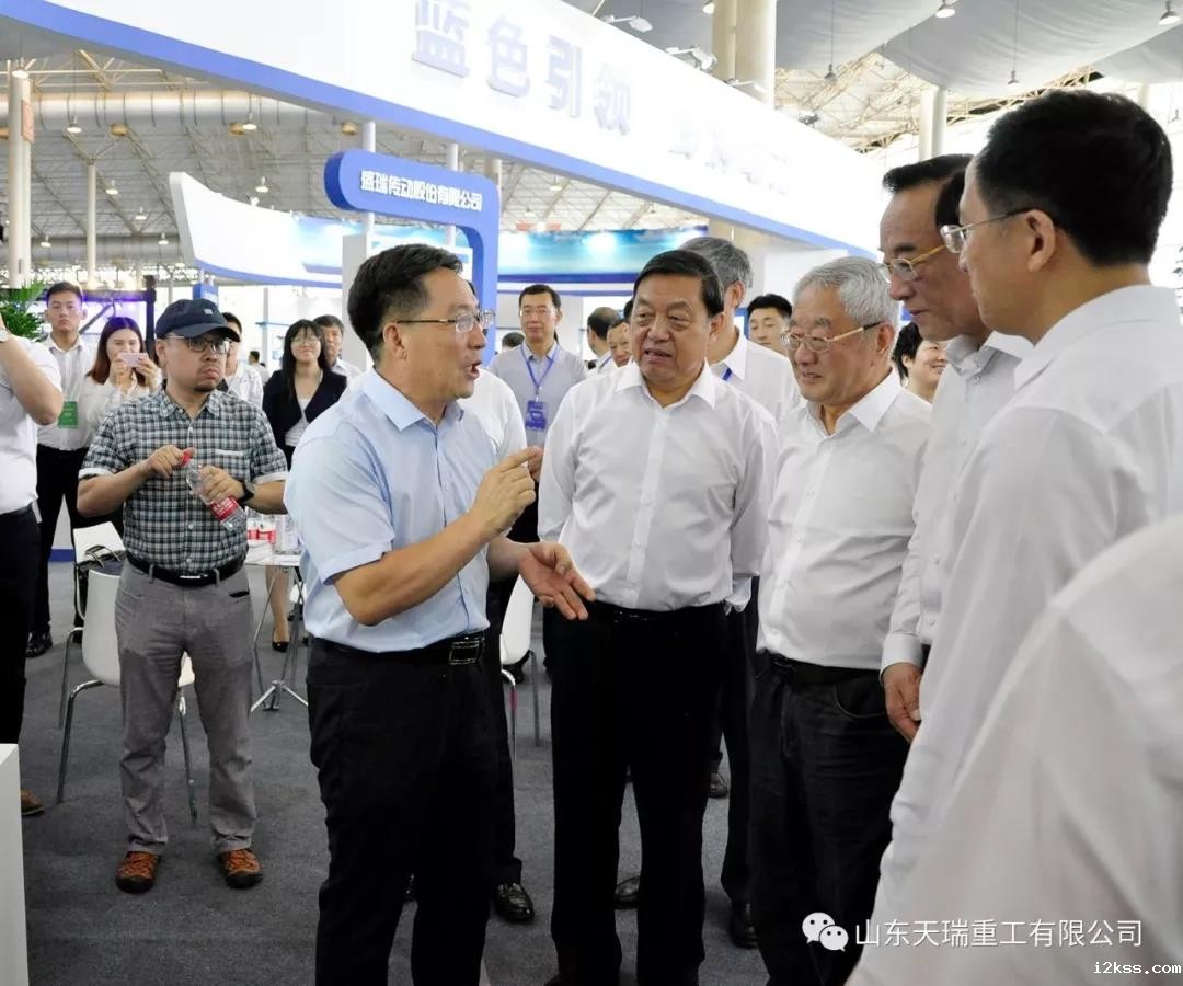 罗博飞海洋技术有限公司技术总监范平演讲 开幕式结束后,出席博览会的山东省生态环境厅副厅长崔凤友一行,在市人大常委会副主任、滨海区党工委书记范福生,潍坊高新区党工委委员、管委会副主任胡文星等领导陪同下,到伟德1949娱乐手机版参观考察。考察组一行详细了解了企业发展历程、磁悬浮鼓风机技术优势和推广应用情况,崔厅长表示,磁悬浮鼓风机是高效节能环保的新兴产品,应大力推广,并鼓励企业积极争取相关节能环保政策支持。