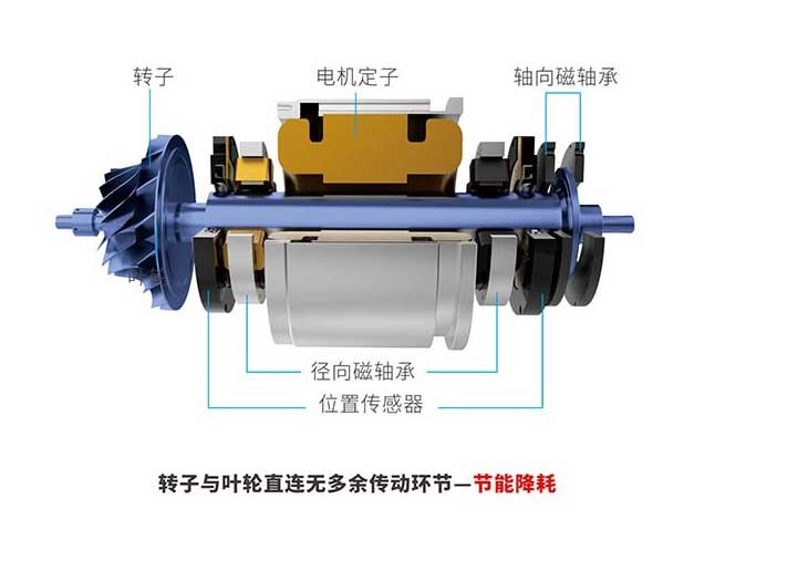 ◇ 采用主动磁力轴承系统,无磨损、无润滑、无维护。